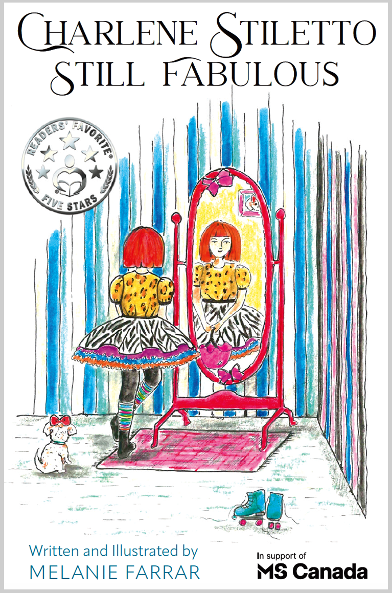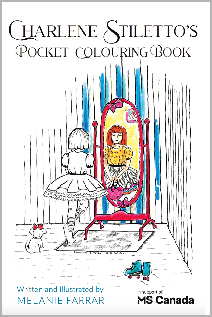 Proceeds from Charlene Stiletto and Her Search for a Fabulous Pair of Shoes benefit theatre workers experiencing a time of personal difficulty, and Charlene Stiletto Still Fabulous and Charlene Stiletto’s Pocket Colouring Book support the MS Society of Canada.